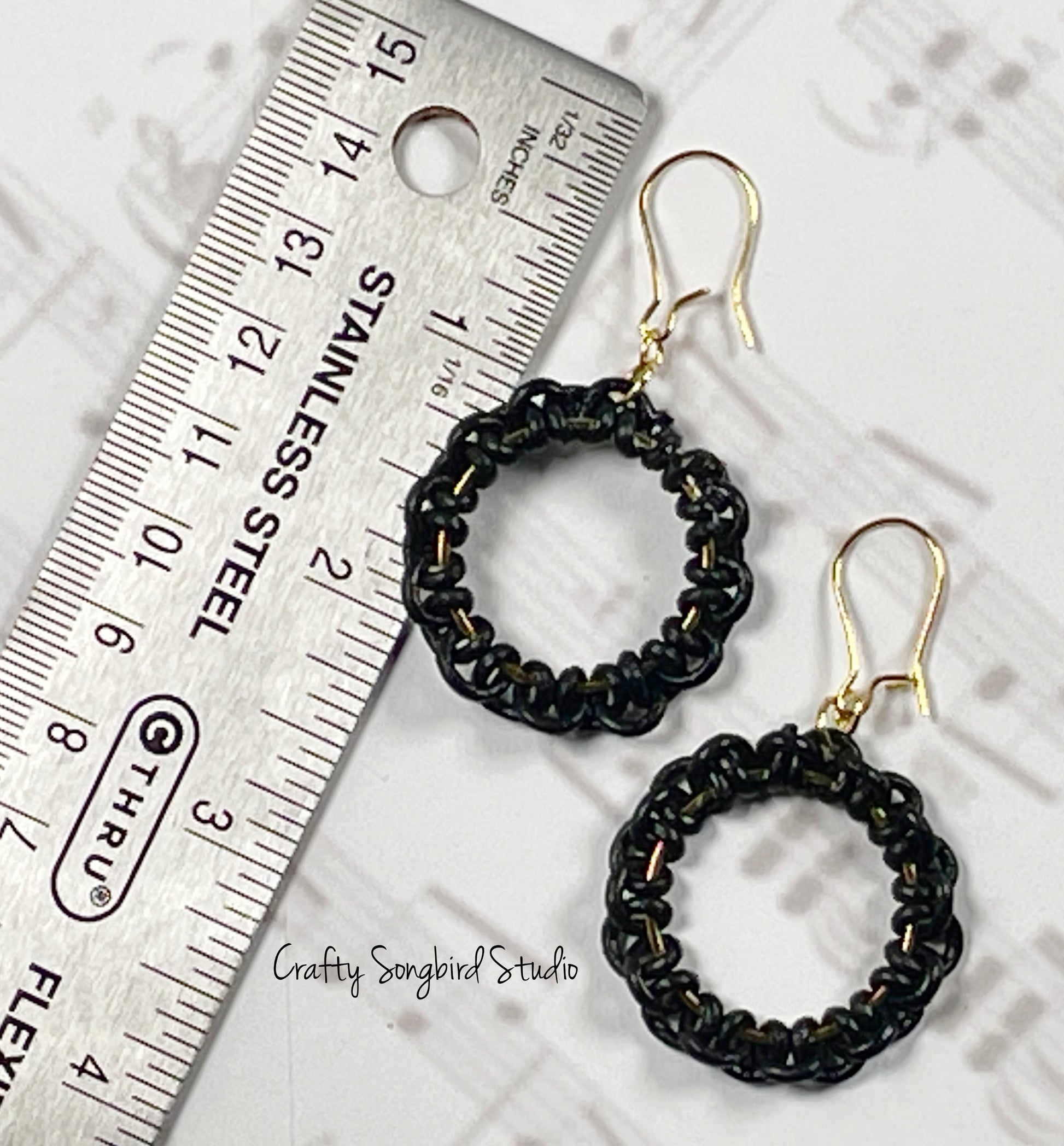 Leather cord is hand-knotted on to metal rings and suspended from lead/nickel-free ear wires.