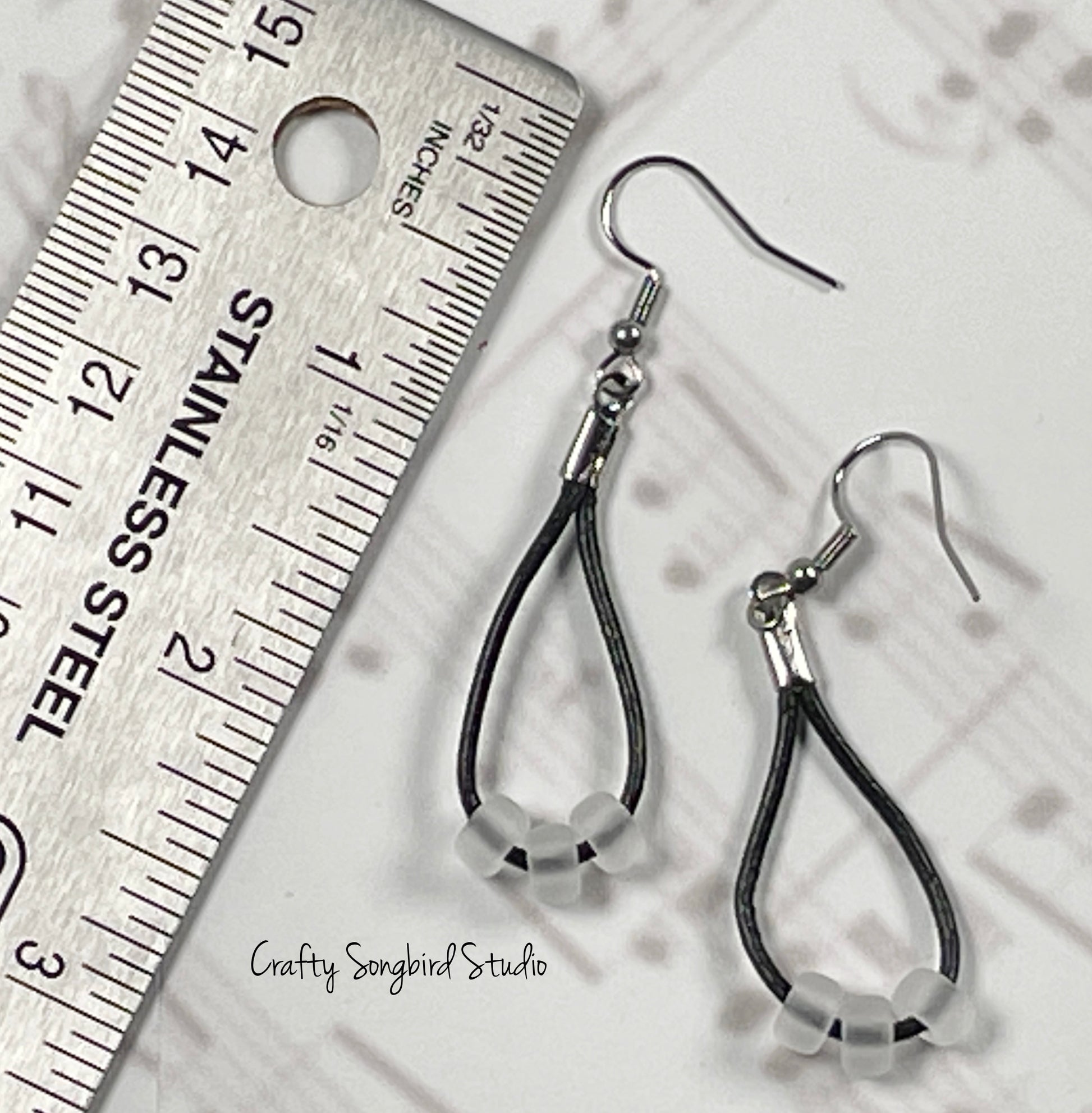 Simple, yet elegant leather and glass bead drop earring. Will look great dressed up or down.