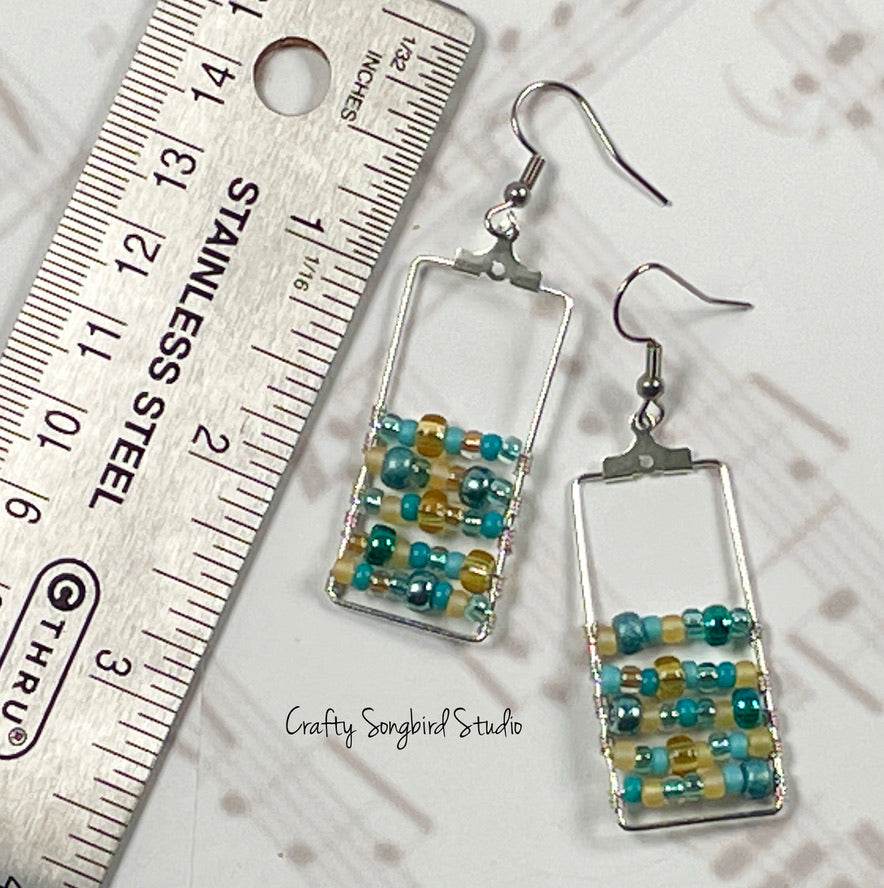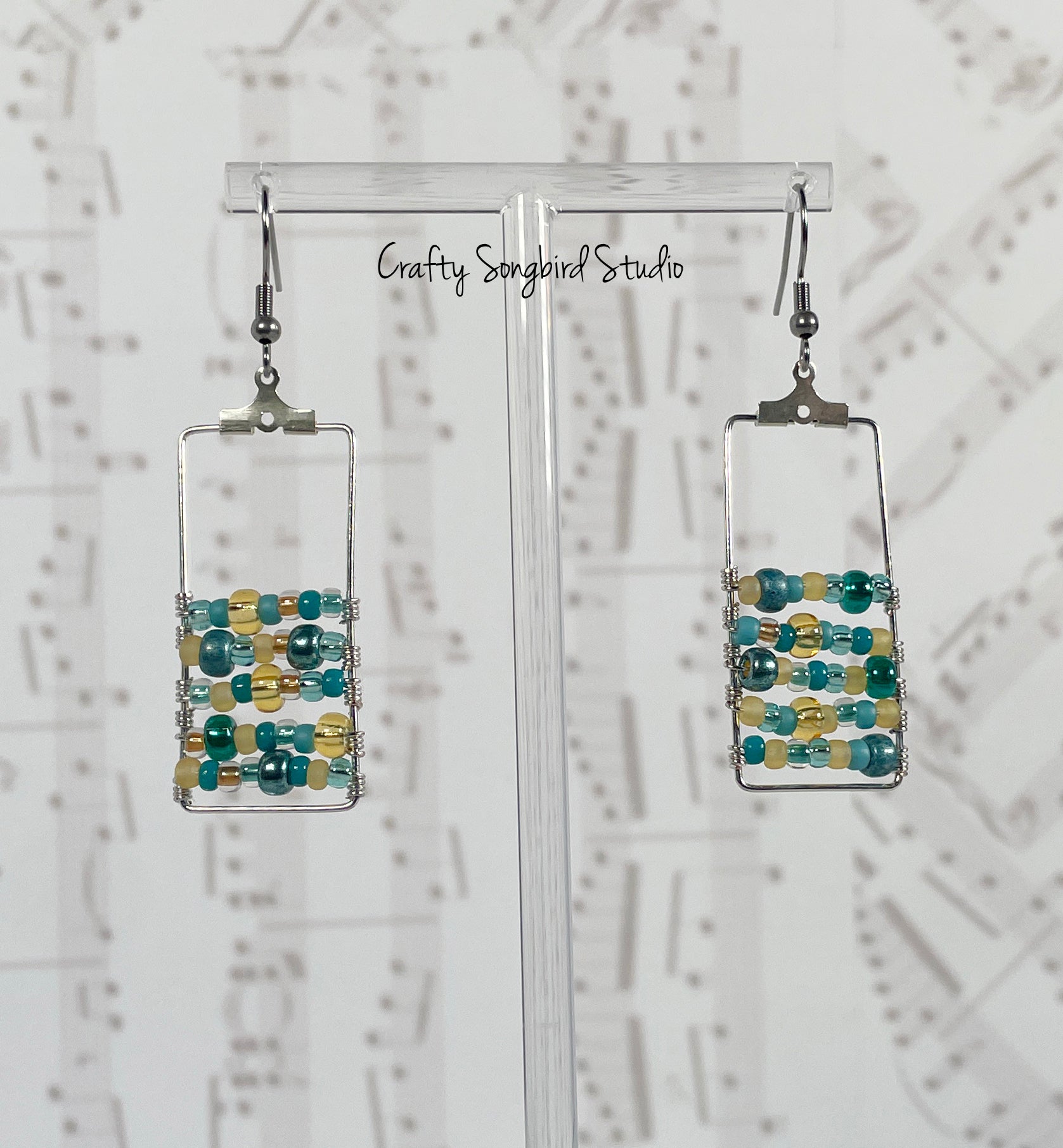 Striped Wrapped Rectangle Earrings - Blue Sky