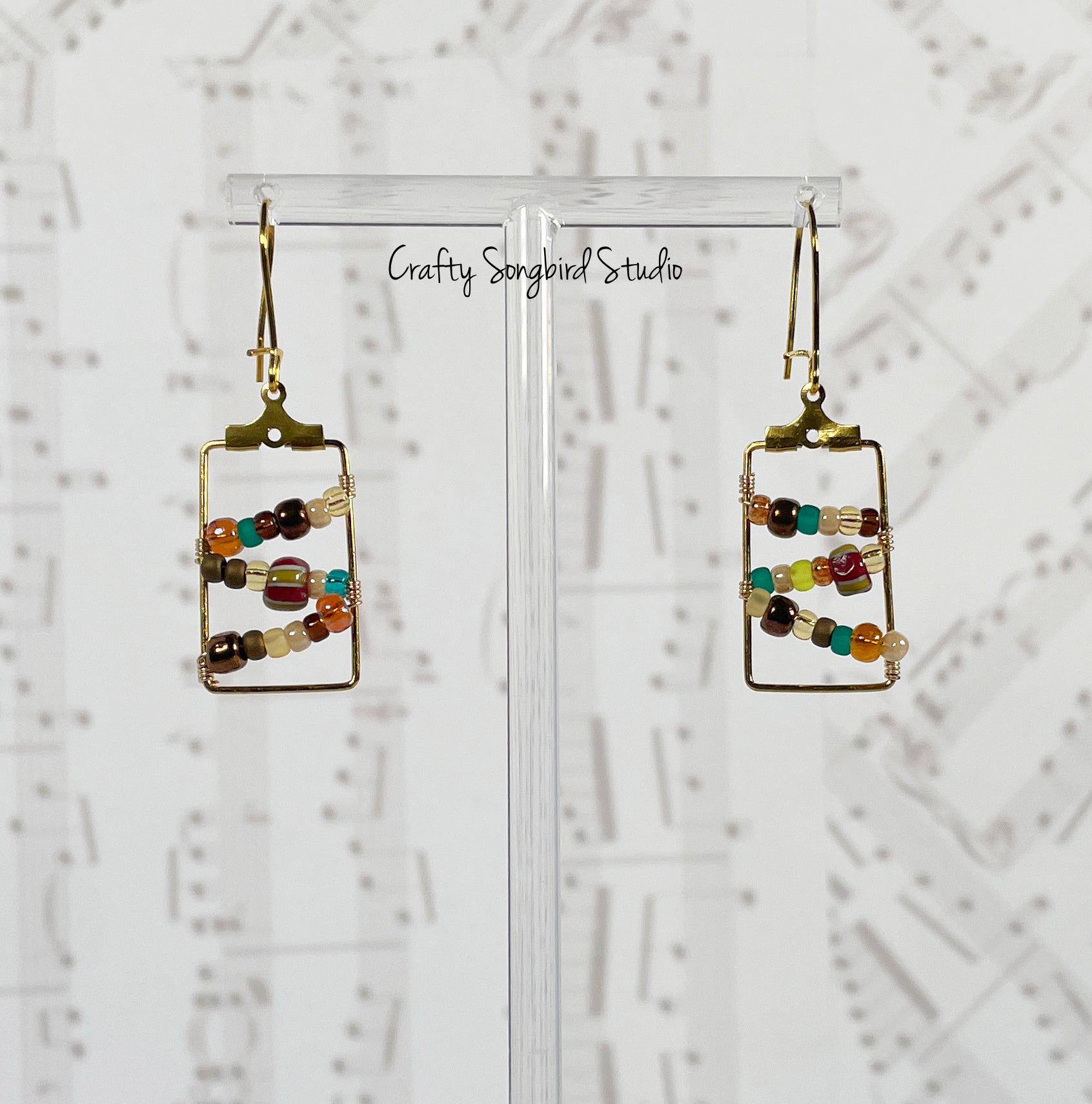 Zig Zag Wrapped Rectangle Earrings - Earth Tones